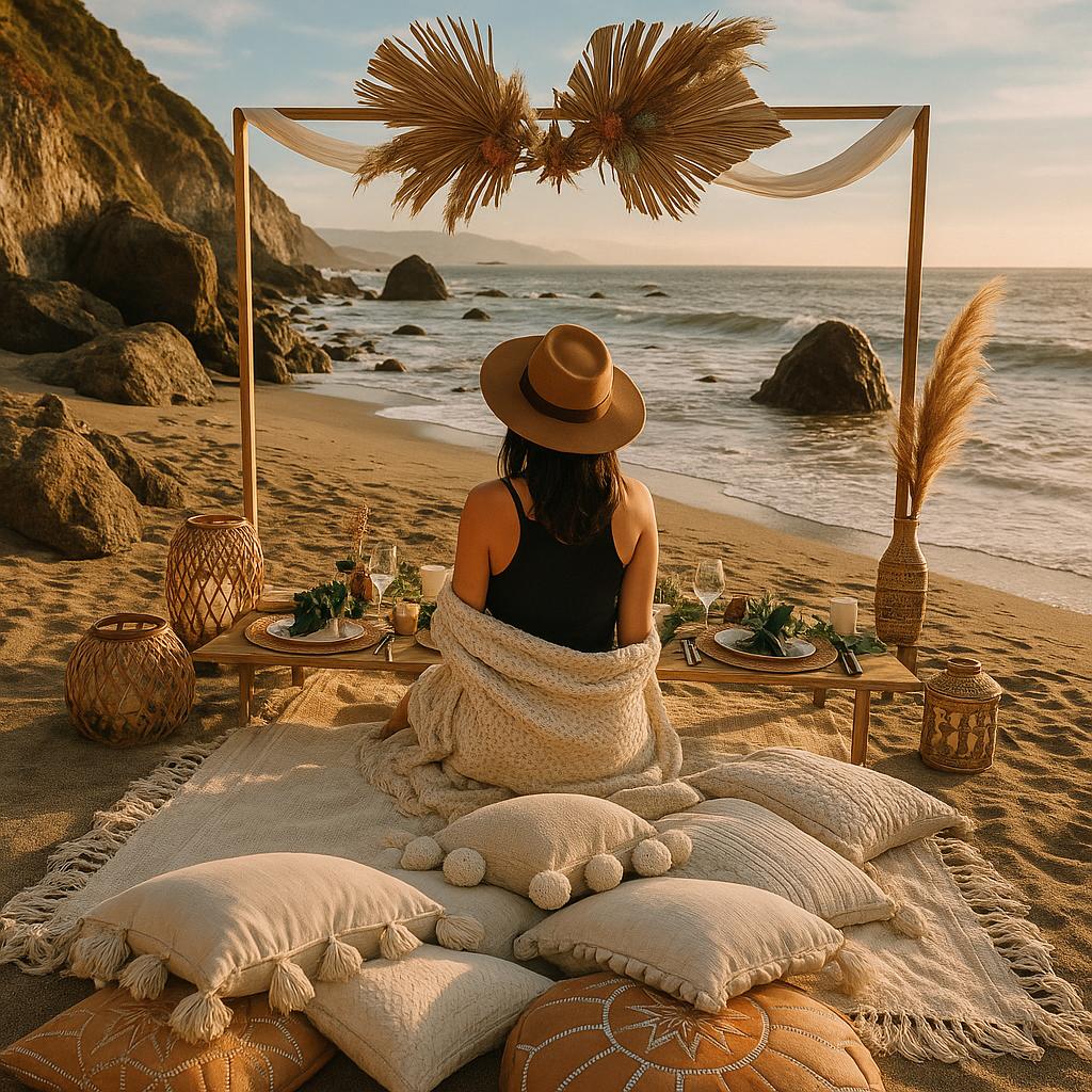 🏖 Boho-style beach picnic with stunning coastal views